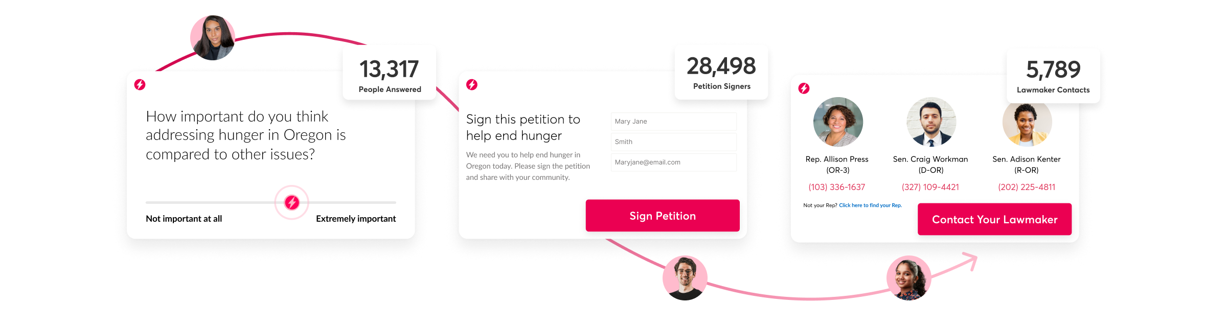 Pick from a selection readymade action templates to mobilize your audience—from sign this petition to contact your lawmaker and more.